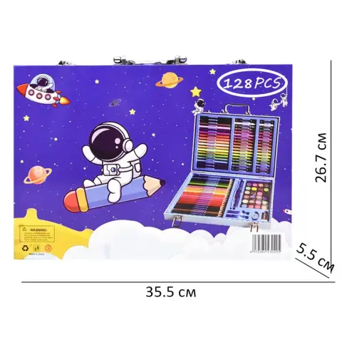 Набір для малювання у кейсі 128 предметів, Космонавт, Синій / Дитячий набір для творчості / Набір художника YU227