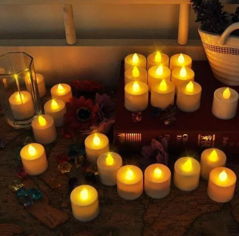 Комплект із 24 світлодіодних свічок стане ідеальним подарунком для коханої людини на будь-яке свято. Свічки працюють від батарейок, що приємно світяться і створюють затишну романтичну атмосферу. А батареї входять у комплект.