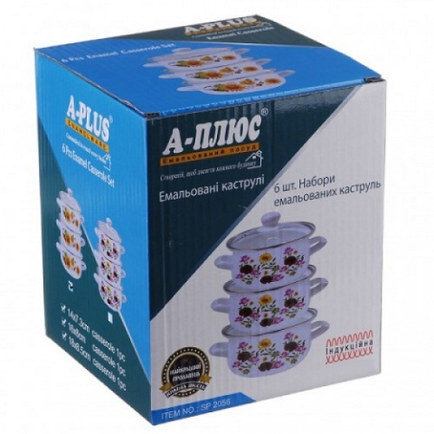 Набір емальованих каструль A-plus 2056 (6 предметів)