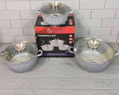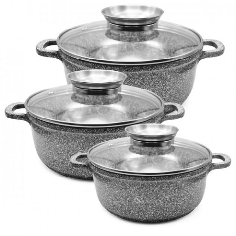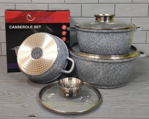 Котли UNIQUE UN-5511 виготовлені з литого алюмінію з багатошаровим гранітним антипригарним покриттям. Перевага даного покриття - це багатошарове покриття з декількох шарів кам'яної крихти на мінеральній основі. Таке покриття визнано одним із найбезпечніших для здоров'я людей та навколишнього середовища.