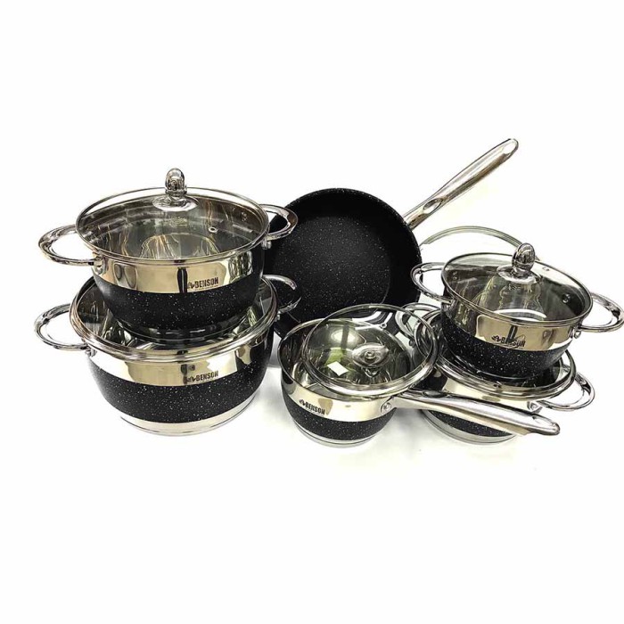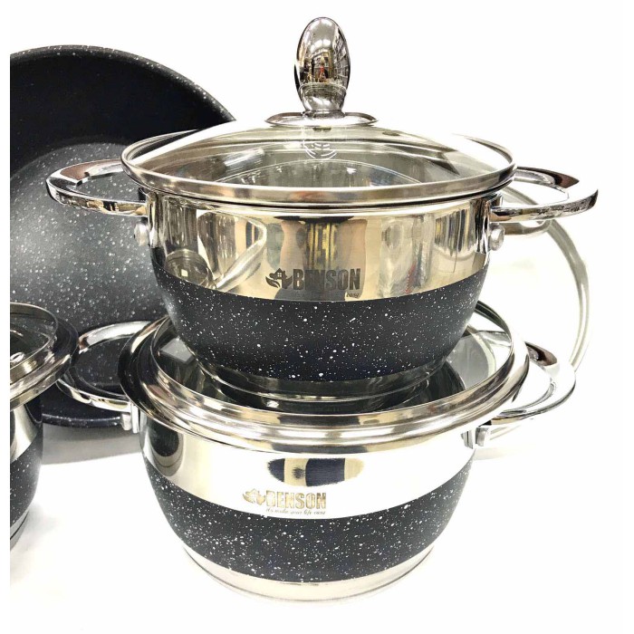 Набір каструль кухонних Benson BN-293 12 предметів в наборі нержавіюча сталь