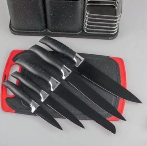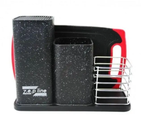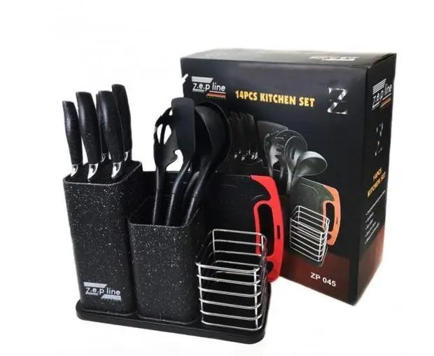 Набір кухонних ножів та приладдя ZP-045 на підставці з дошкою (14 предметів) чорний