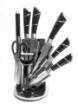 . Він включає всі необхідні види ножів, ножиці і мусат. Всі предмети виготовлені із якісної нержавіючої сталі. Рукоятки ножів, зроблені з нержавіючої сталі та бакеліту. Підставка, що обертається, виготовлена з нержавіючої сталі та акрилу.