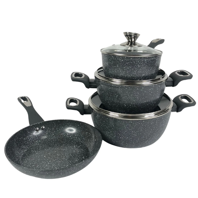 Набір посуду для будинку зі сковородою, граніт, круглий (7 предметів)
