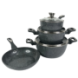 Набір посуду для будинку зі сковородою, граніт, круглий чорний (7 предметів)