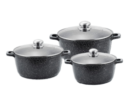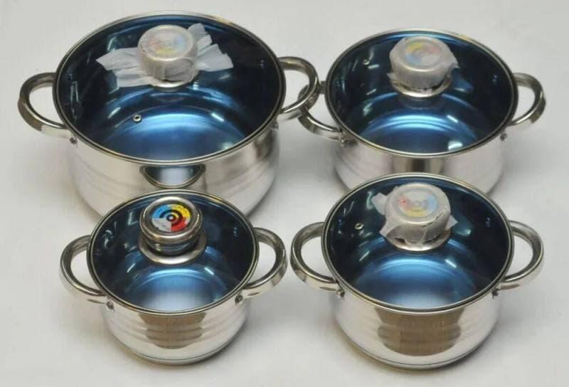 Каструлі з багатошаровим дном (9 шарів) , забезпечують чудовий розподіл та збереження тепла. Кришки виготовлені з жароміцного скла з клапаном для відведення пари. Клепочная система кріплення ручок як довговічна, а й зарекомендувала себе тим, що ручки не нагріваються разом із корпусом каструлі. Усередині каструль мірна шкала. Набір посуду підходить для всіх типів плит, включаючи індукційні. Прекрасний вибір каструль для Вашої кухні та звершень Ваших кулінарних шедеврів.