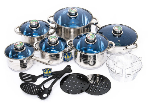 Набір посуду UNIQUE UN-5039 з 19 предметів виготовлений з високоякісної, нержавіючої сталі. Сучасні каструлі з високоякісної нержавіючої сталі з прозорими кришками функціональні, стильні та надійні. Незамінний набір на кухні кожної господарки, що поважає себе.