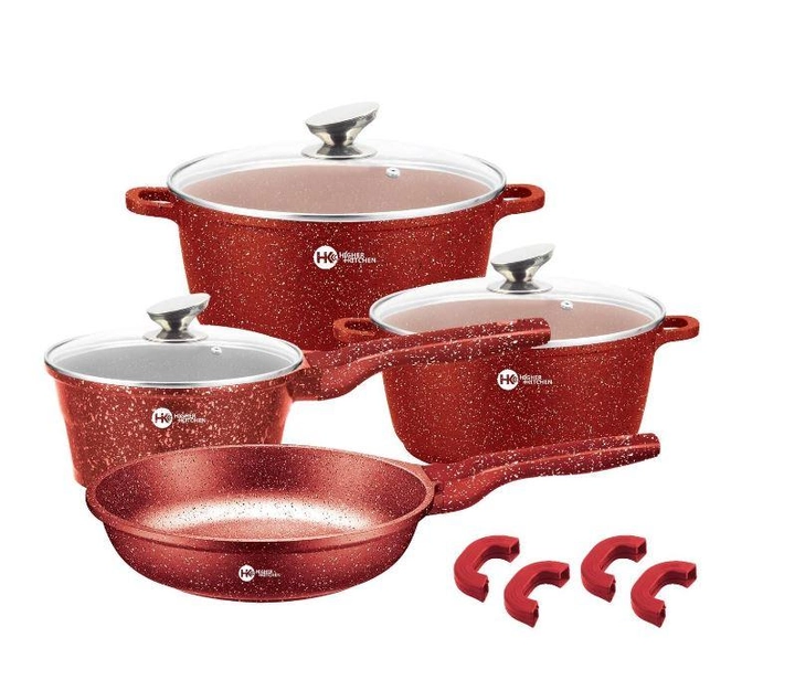 Набір каструль виконаний із міцного та екологічно чистого алюмінію – безпечного для здоров'я матеріалу, який не викликає алергію та не виділяє шкідливих речовин у їжу навіть за високої температури. Higher+Kitchen - це посуд з екологічно чистого матеріалу, що має високу теплопровідність, гігієнічність і довговічність. Дно каструль 7-ми шарове, термоакумулююче, що не деформується, забезпечує рівномірну теплопровідність, швидке розподілення і тривале утримання тепла, завдяки чому значно знижується ризик пригорання їжі, прозорі кришки - термостійке скло з отвором для виходу пари.