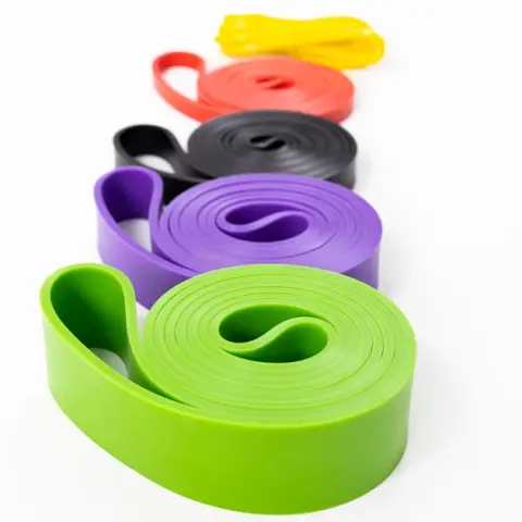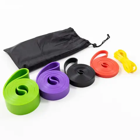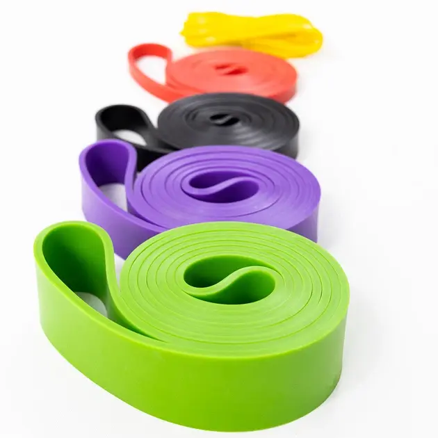 Тренувальна гумка виконана з високоякісного 100% латексу, завдяки чому вона дуже міцна і довговічна. 5 еспандерів довжиною 208 см по колу та шириною 6.4, 13, 22, 32 та 44 мм.