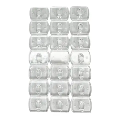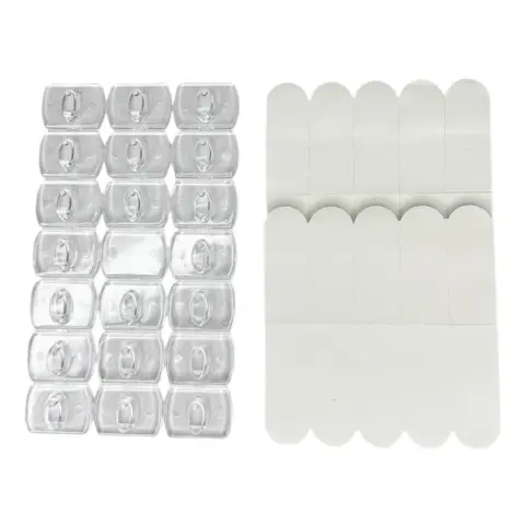 Набір з 20 гачків прозорих самоклеючих розміром 1,3х1,8 см. Застосовується для легкого, надійного та безпечного кріплення гірлянд, проводів, декору на горизонтальних та вертикальних поверхнях. За допомогою цього комплекту можна організувати простір без використання інструментів і поверхонь, що не ушкоджують.
