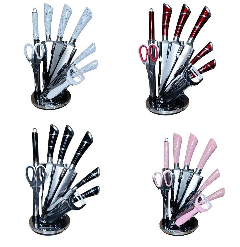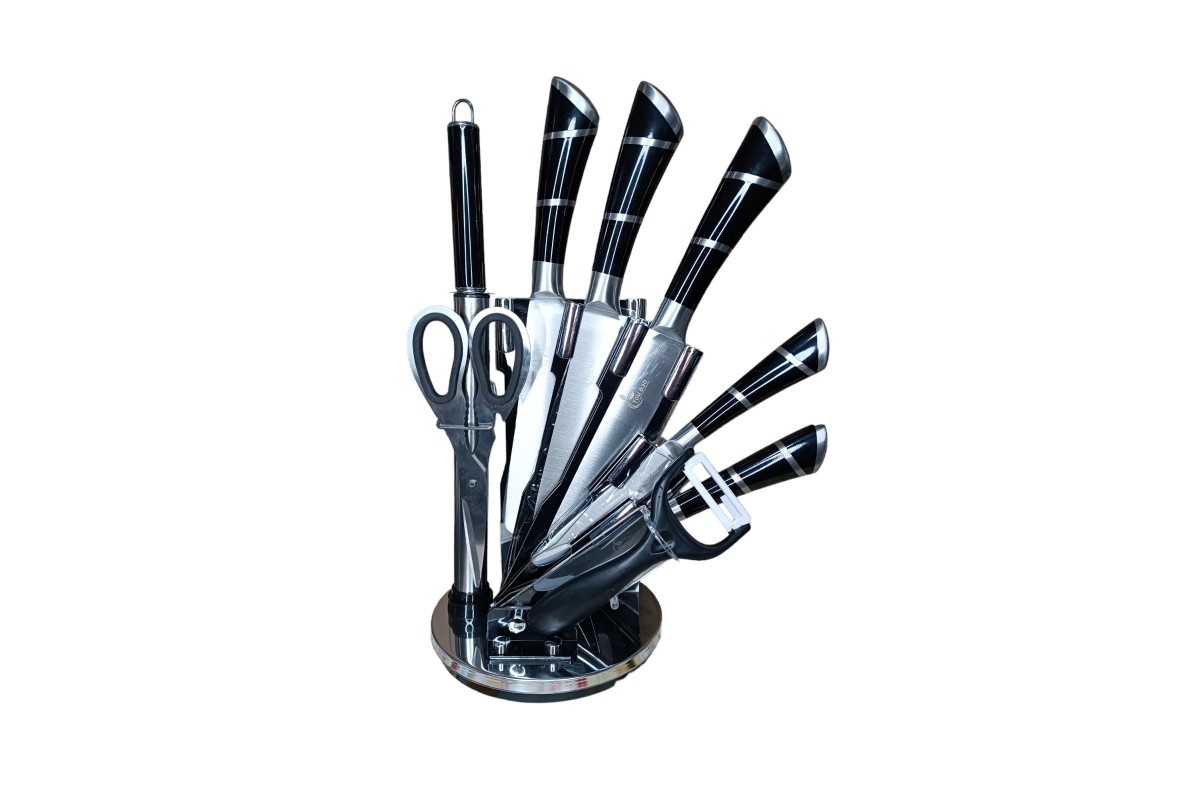 Набір столових ножів, ножиць та чищення, що складається з 9 предметів, є практичним і стильним комплектом для кухні.
