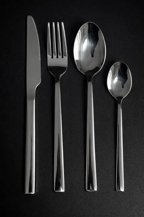 Столові прилади 20-2 – це поєднання сучасного дизайну, елегантності та практичності. Оригінальна текстура на ручках не тільки привертає увагу, але й забезпечує комфорт у використанні. Лаконічний металевий блиск гармонійно доповнює як класичне, так і сучасне сервірування, надаючи столу стильного та завершеного вигляду.