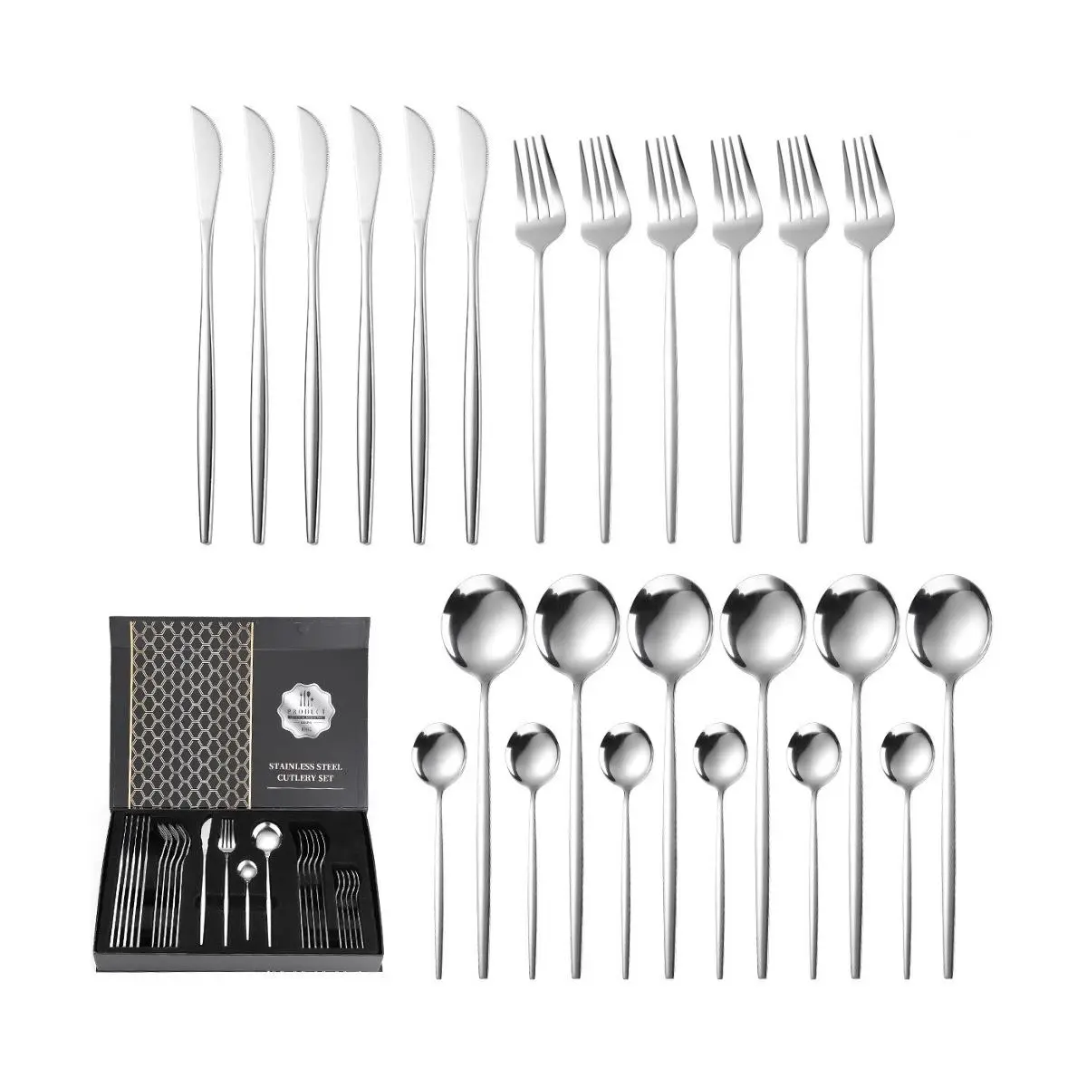 Набір столових приладів Kitchen Ware 24 шт. з нержавіючої сталі на 6 персон Silver