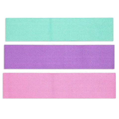 У набір входить 3 яскраві тканинні фітнес-стрічки різної сили опору: