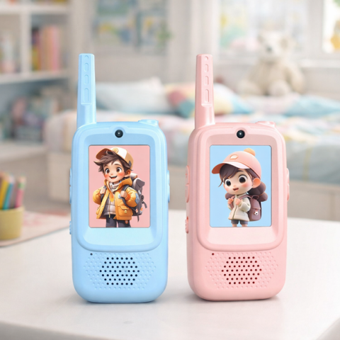 Це набір із двох дитячих відеорацій із підтримкою двостороннього відео- та голосового зв'язку. Пристрої мають кольоровий екран, HD-камеру, працюють у бездротовому діапазоні 2,4 ГГц з радіусом дії до 300 метрів. Легкий корпус, просте управління та яскравий дизайн у блакитному та рожевому кольорах робить набір ідеальним для активних ігор, спілкування та розвитку комунікативних навичок дитини.