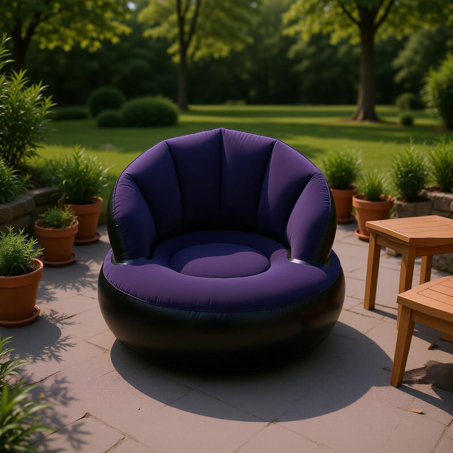 Комфорт та стиль поєднані в універсальному надувному дивані-кріслі. Ергономічна форма підтримує тіло у природному становищі, створюючи ідеальні умови для відпочинку вдома, на терасі чи природі. Потовщена конструкція підвищує стійкість та довговічність, м'яка поверхня із міцного ПВХ забезпечує приємні тактильні відчуття та легкий догляд.