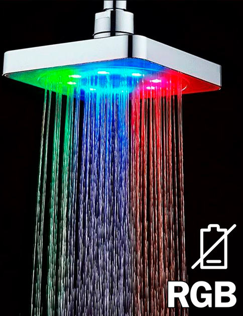 Світлодіодний душ стане головною особливістю Вашої ванної кімнати. Світлодіодні лампочки всередині душу (LED Shower) підсвічують потік води, що проходить крізь нього, в різні кольори (зелений, синій, червоний). Під тиском води світлодіоди миттєво вмикаються, при цьому конструкція приладу передбачає захист міні-гідрогенератора від вологи, що робить пристрій довговічним та безпечним в експлуатації.