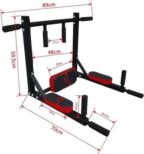 Турник гнутий з великим виступом призначений для виконання підтягування з різним хватом, вправ на прес, підняття ніг, підтягування за голову в домашніх умовах. На брусах виконують віджимання. М'які опори під руки та спину сприяють комфортному виконанню вправ на м'язи преса. Ручки турніка та брусів виготовлені з еластичного пластику, який не тільки приємний на дотик, не дає рукам прослизати і прослужить довгі роки.