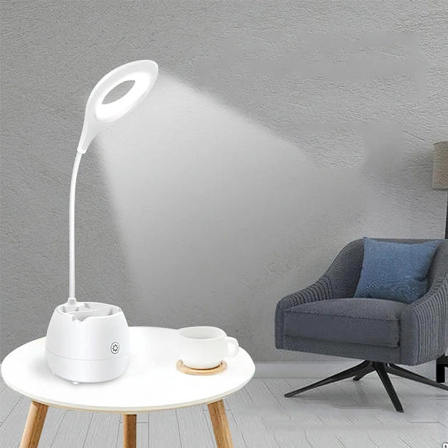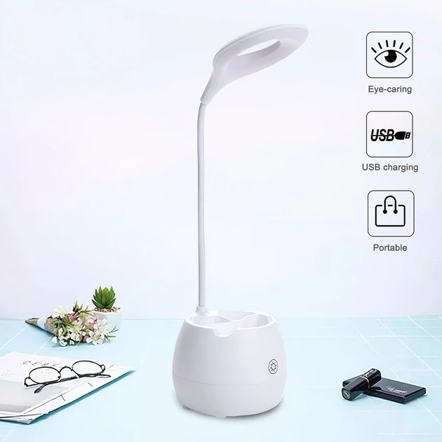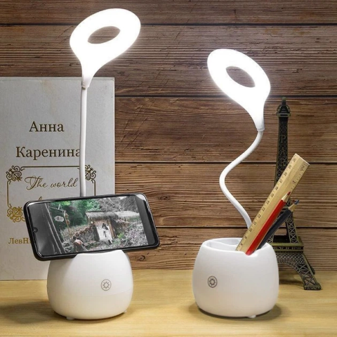 Модель має на увазі можливість роботи як від інтегрованого акумулятора, так і зовнішнього джерела живлення: від мережі, ноутбука, повербанка. Тому сміливо беріть її з собою та вмикайте вдома, в офісі або відпочиваючи на літній терасі на дачі. Світлодіодна лампа забезпечить яскраве освітлення протягом тривалого часу. Тепер вам не доведеться захаращувати стіл пеналами, органайзерами чи підставками. Лампа також може бути задіяна як підставка для мобільного телефону.