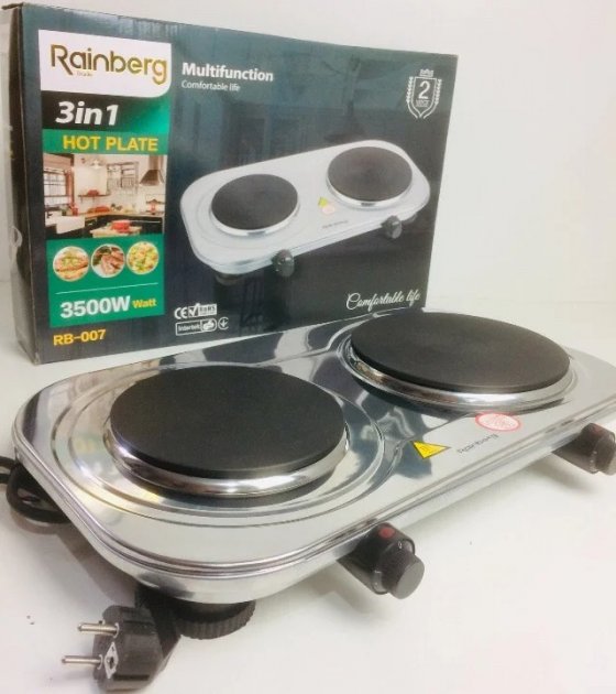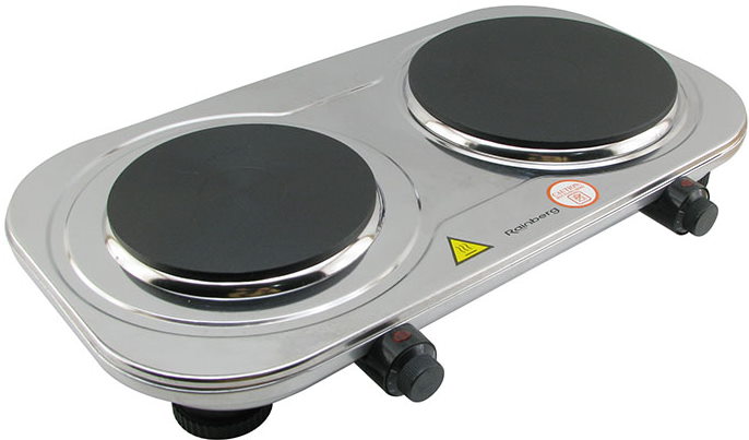 Компактна електрична плитка Rainberg RB-007 можна легко транспортувати в будь-яке відповідне місце, адже її працездатність залежить виключно від наявності мережі електроживлення. Плитка Rainberg RB-007 має цілі круглі нагрівальні поверхні, і є нагрівальним елементом. Регулювати потужність жару плитки можна за допомогою механічного оборотного регулятора, для кожної поверхні окремо.