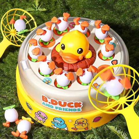 Настільна гра з качками пропонує суперникам використовувати маленькі сачки, за допомогою яких необхідно зловити якнайбільше качечок. Це сприятиме розвитку дрібної моторики, координації рухів та швидкості реакції у дітей.