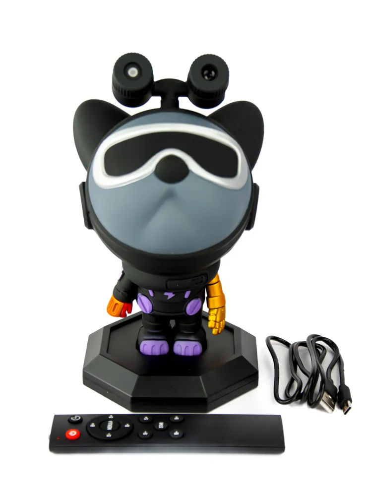 Нічник використовує лазерні технології для створення яскравих та чітких зображень зірок та туманностей, що дозволяє досягти неймовірно реалістичного ефекту зоряного неба. Лазерні промені проектують мерехтливі зірки, що рухаються, створюючи відчуття справжнього космосу. Оформлений у вигляді симпатичного собаки, що робить його не тільки функціональним пристроєм, але і декоративним елементом інтер'єру.