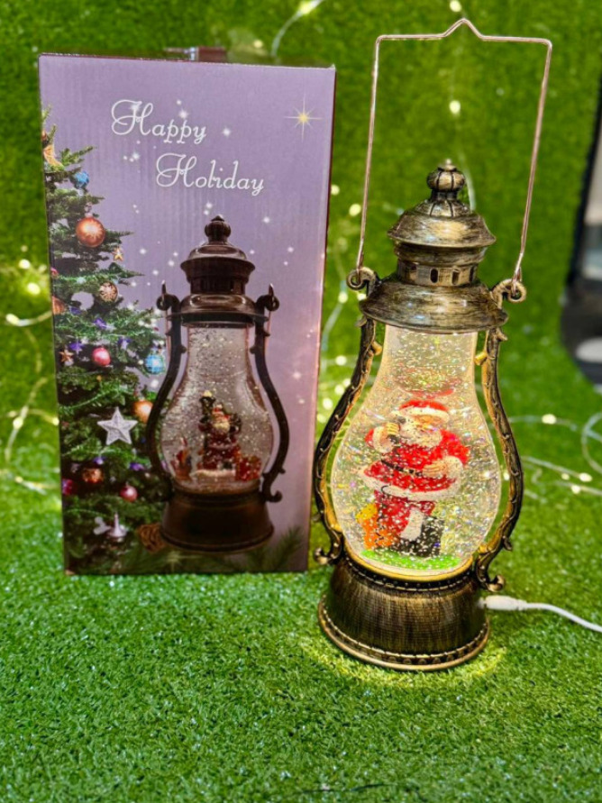 Усередині світильника знаходиться мініатюрна сцена із зображенням Санта-Клауса, що переміщається, створюючи відчуття живої дії. Мелодії новорічних пісень та LED-підсвічування наповнюють простір чарівною атмосферою свята. Світильник виконаний у стильному дизайні, який чудово доповнить будь-яке новорічне оформлення, будь то ялинка, камін чи святковий стіл.