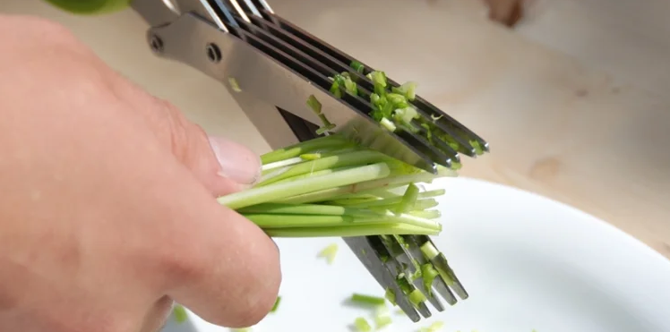 Зручно нарізати свіжу зелень безпосередньо в каструлю, салатник або іншу страву, не пошкоджуючи структуру трав - 5 гострих лез з нержавіючої сталі.