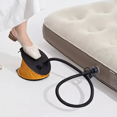 Ніжний насос для накачування надувних виробів – це зручний та практичний аксесуар для швидкого наповнення повітрям матраців, човнів, м'ячів, ліжок та інших виробів для відпочинку. Цей ножний насос виготовлений із міцного пластику та зносостійкої тканини, що забезпечує надійність конструкції та тривалий термін служби. Він не вимагає підключення до мережі, тому ідеально підходить для використання вдома, на пляжі, на дачі або під час подорожей. Об'єм камери 1,4 л дозволяє ефективно закачувати вироби без зайвих зусиль.