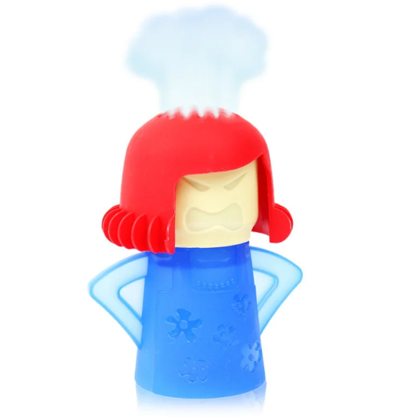 ;Якщо ви не знаєте чим відмити застиглий бруд у мікрохвильовій печі, то очисник мікрохвильової печі Енгрі Мама вам точно сподобається! Пара виходить з голови енгрі мама і пом'якшує бруд та плями для полегшення чищення. Просто додайте оцет і воду, потім помістіть злу маму в мікрохвильову піч і поставте таймер на 7 хвилин.