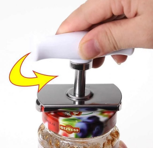 Чудовий помічник на кухні! Ця відкривачка легко допоможе відкрити навіть застарілі баночки. І не треба шукати рушник чи псувати кришку ножем! Працює вона за принципом лещат.