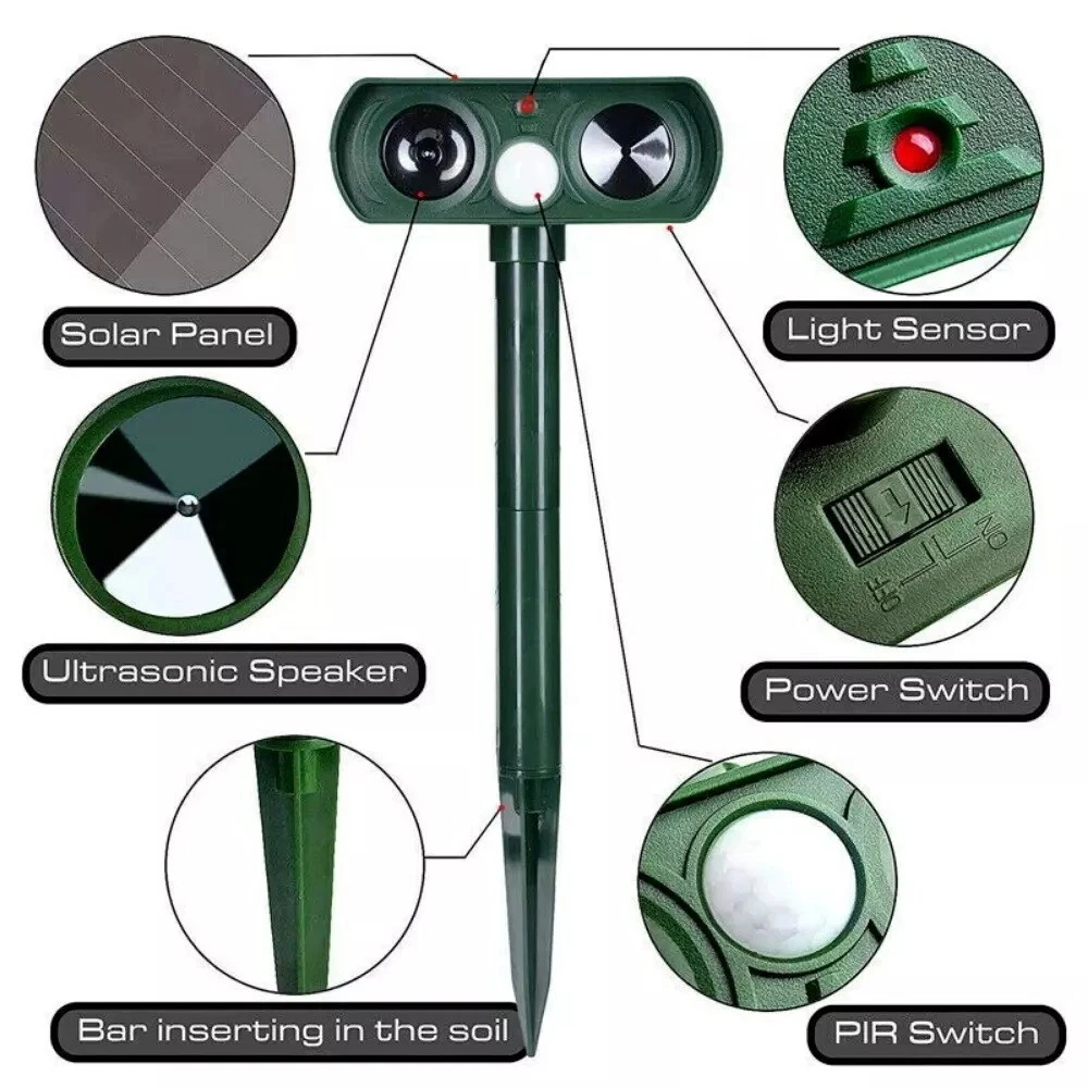 Відлякувач тварин на сонячній батареї HC19 / Ультразвуковий відлякувач кротів, змій, птахів та комах на сонячній батареї