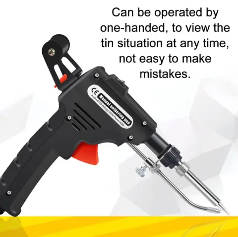 Цей портативний автоматичний паяльник – ідеальне рішення для зручного, швидкого та ефективного паяння. Оснащений ручним механізмом подачі припою, дозволяє працювати однією рукою, що значно підвищує точність і зручність при ремонті електроніки, побутових приладів або DIY-проектах.