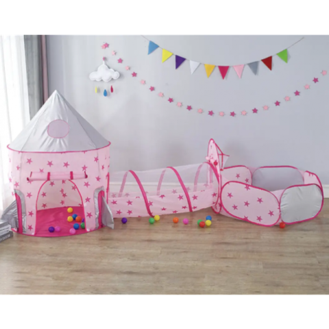 Намет дитячий ігровий з тунелем створює затишний і захоплюючий простір для ігор та фантазій дітей. Складання намету для дітей дуже проста і не вимагає інструментів, що дозволяє встановити її за кілька хвилин і швидко скласти, коли вона не використовується. Міцний та безпечний матеріал забезпечує довговічність та безпеку під час ігор.