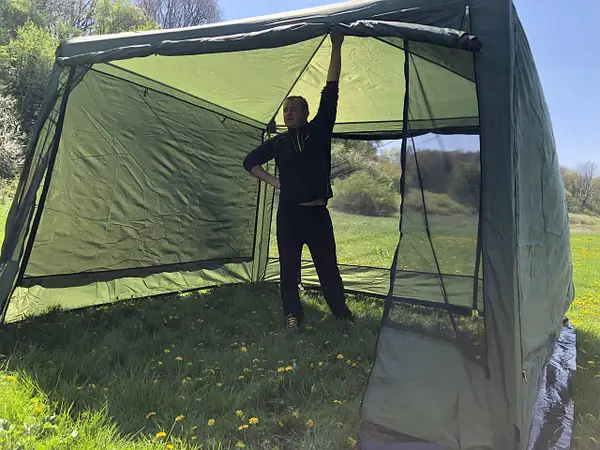 Два входи в намет, стіна навпроти стіни. Вхід закривається на дві застібки блискавки з двох сторін, якщо все відкрити, то вийде наскрізний прохід.