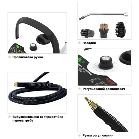 Steam Cleaner – це потужний портативний пароочисник з потужністю 2500 Вт, який забезпечує швидке та ефективне очищення вашого будинку чи робочого місця. Він чудово підходить для видалення жиру, бруду та бактерій, роблячи ваше прибирання максимально ефективним.