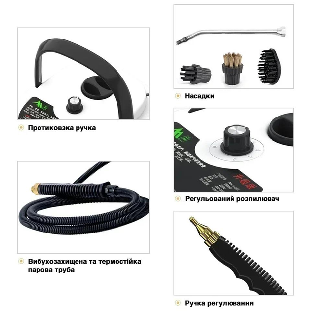 Декілька насадок: З різними насадками пароочисник задовольняє численні потреби в очищенні, роблячи його адаптивним та універсальним інструментом.