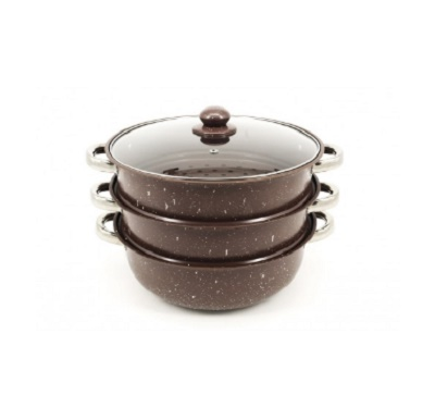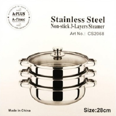 Пароварка A-PLUS з нержавіючої сталі у вигляді 3-х ярусної каструлі з кришкою. У такій пароварці можна готувати як каші, так і овочі з м'ясом. Основна перевага даного виробу в тому, що не потрібне додавання жирів. Вона підходить для дітей, використовується для різних дієт. Дану модель можна використовувати як невелику мантишницю, пароварку в якій можна готувати відразу три різні страви і просто каструля.