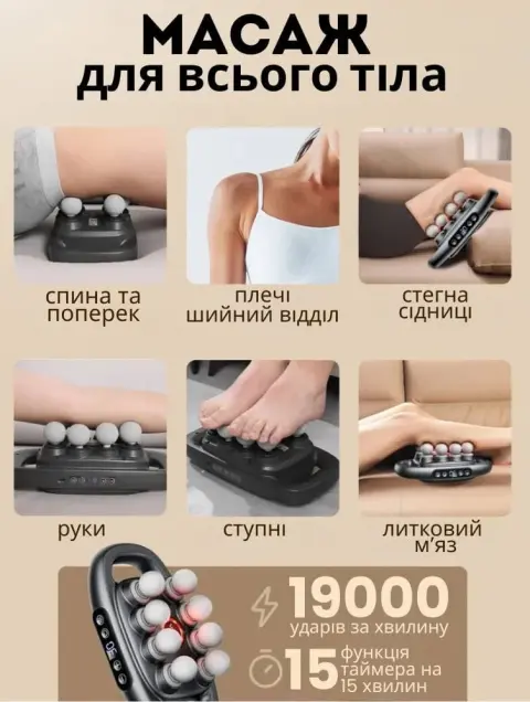 Глибокий масаж м'язів – проникає до 25 мм у тканини, ефективно знімаючи спазми та втому.
