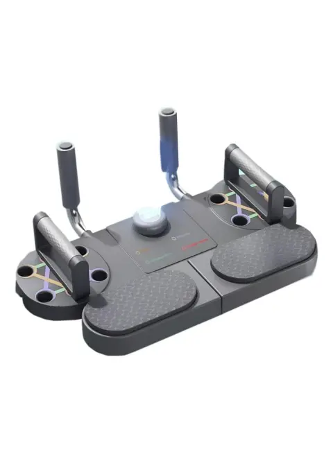 Ця платформа для фітнесу поєднує кілька функцій, включаючи дошку для віджимань, упори для віджимань та стійки для віджимань, забезпечуючи можливість різноманітних вправ для м'язів плечей, грудей, спини, преса, сідниць, рук та ніг.