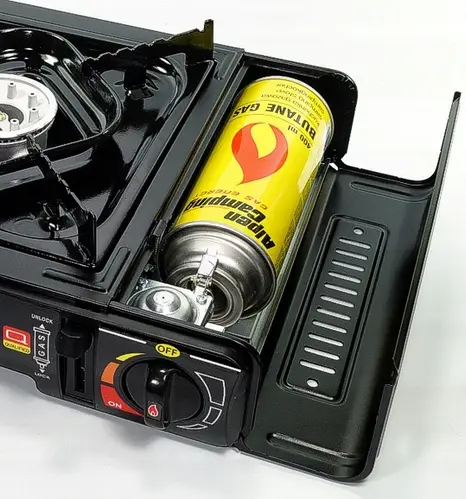 ✔ Складання картриджа дуже проста. Просто відкрийте контейнер, розташований збоку плити, та вставте газовий балон – плита майже відразу готова до використання.
