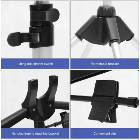 Завдяки надійному затиску стійка утримує одяг без складок, а міцна конструкція із алюмінієвого сплаву та пластику гарантує довговічність. Компактний дизайн дозволяє заощаджувати місце під час зберігання, а стійка чотирикутна база запобігає розгойдування під час використання.