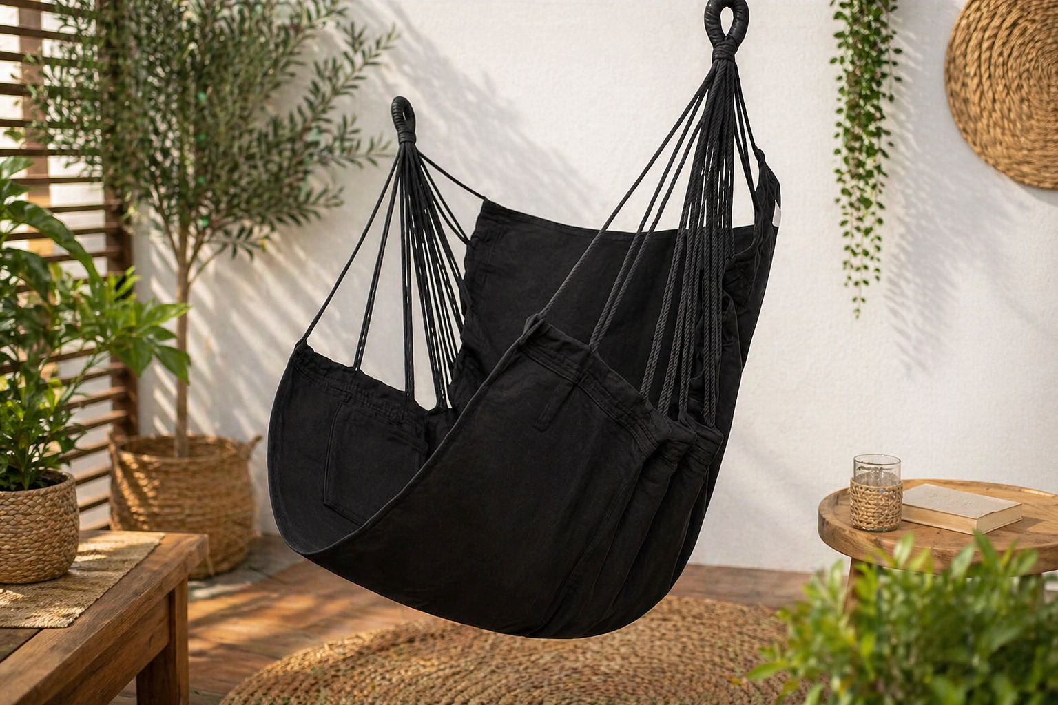 Підвісне крісло-гамак садовий 100x130см до 150кг Чорний