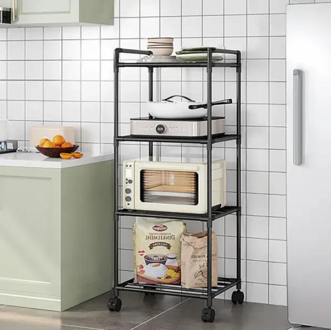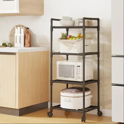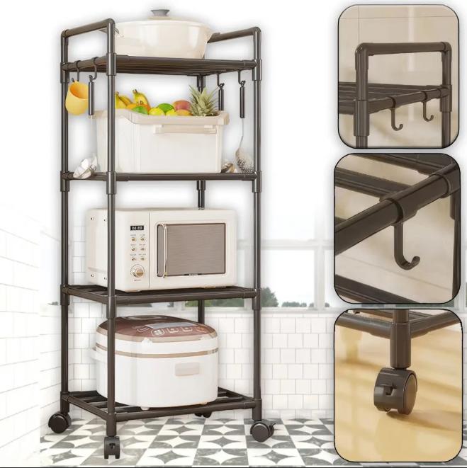 4 полиць забезпечують зручне зберігання кухонних приладів, рушників, іграшок, книг та інших предметів.