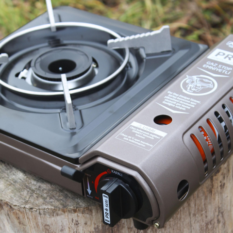 Портативна газова плита одноконфоркова з п'єзозапалюванням для приготування їжі на компанію.