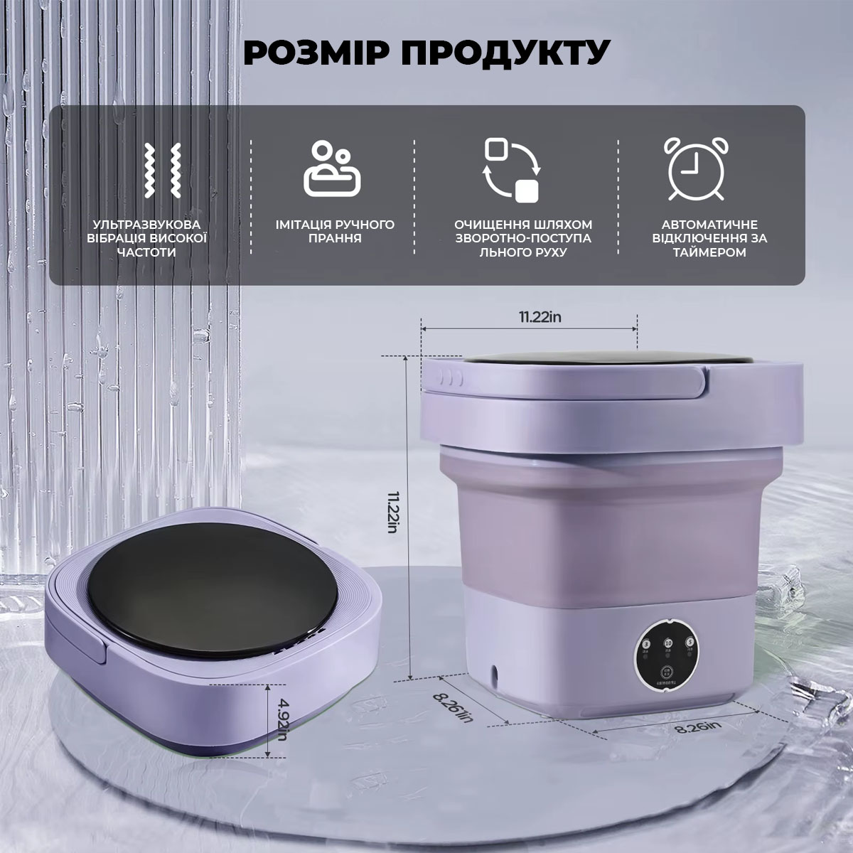 Портативна міні складана ультразвукова пральна машинка на 12L