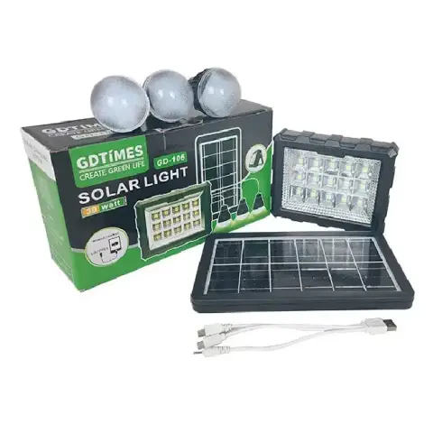 Сонячна зарядна станція GDTimes GD 106 з ліхтарем та 3 лампочками