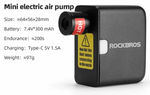 Портативний електричний насос ROCKBROS AS1 Mini з високим тиском, з наконечником для вентиля FV/AV, для дорожніх та гірських велосипедів