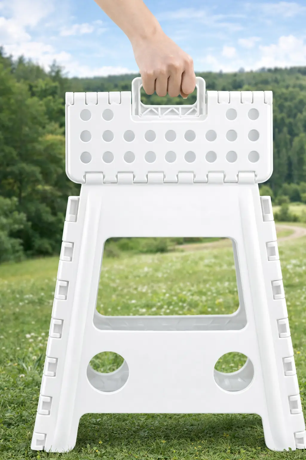 Цей складаний табурет ідеально підходить як для використання у приміщенні, так і на відкритому повітрі. Складна конструкція робить його компактним та портативним. Він легко поміститься в рюкзак або ручну поклажу та виготовлений із міцного пластику, що витримує вагу до 125 кг.