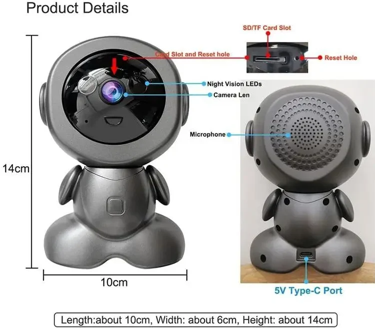 Wi-Fi камера Q1 – це сучасна IP-камера для відеоспостереження за допомогою повороту (PTZ). Вона забезпечує цілодобовий контроль за приміщенням завдяки якісному нічному баченню та автоматичному відстеженню руху. Камера оснащена функцією двостороннього аудіозв'язку, підтримує запис на картку пам'яті та хмарне сховище. Управління та перегляд здійснюється через мобільний додаток V380Pro з будь-якого пристрою.